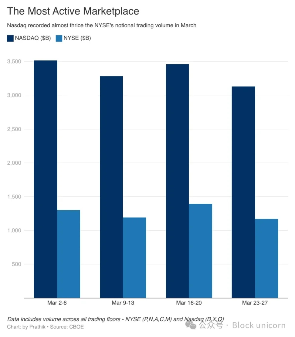 在标普宣布这一消息的第二天,美国证券交易委员会(SEC)批准了纳斯达克以代币形式交易和结算部分股票的申请。纳斯达克是全球最活跃的交易场所之一,其名义交易量通常超过纽约证券交易所(NYSE),后者是全球市值最大的交易所。