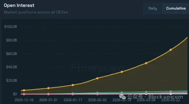 3 月 1 日的未平仓合约量为 11.3 亿美元,4 月 1 日翻了一番,达到 22 亿美元。这表明交易员们对 Hyperliquid 的永续合约充满信心,纷纷锁定资金。