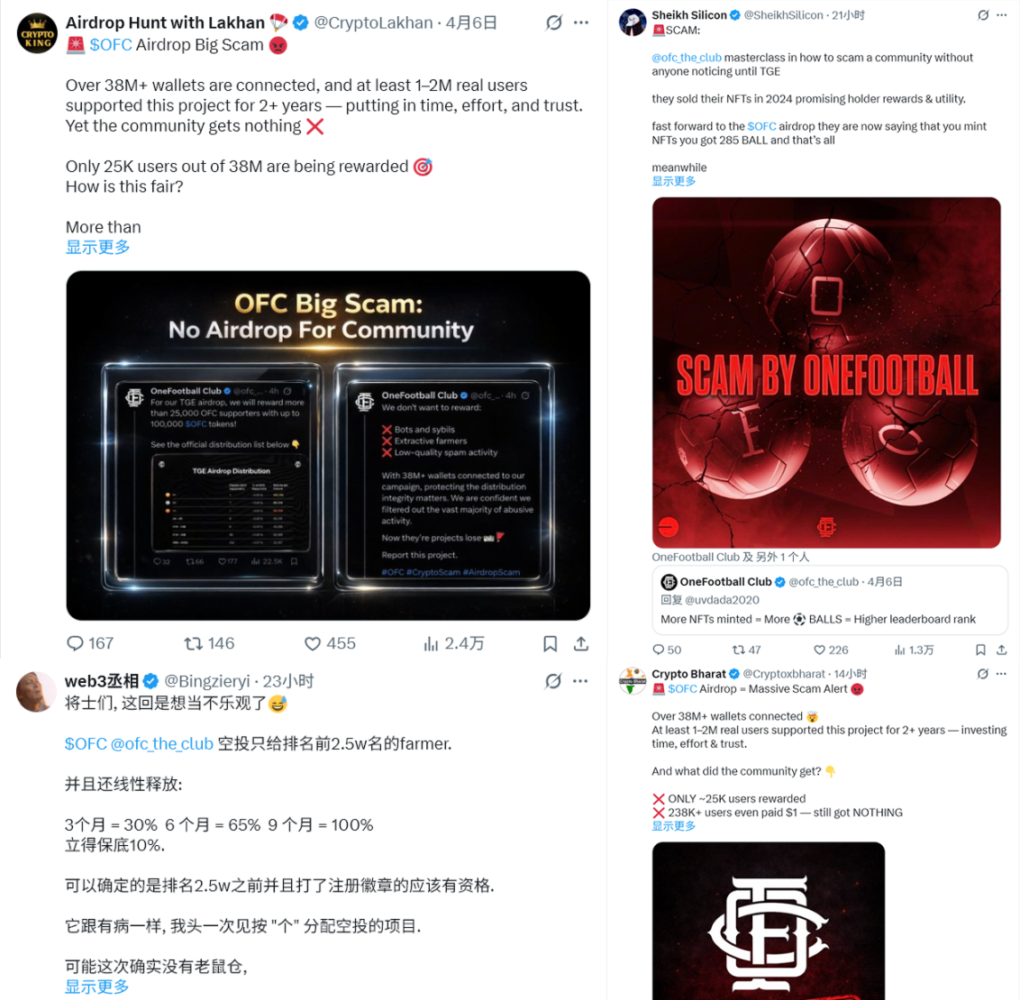Onefootball Club 部分社区声音 | 图源:X 平台