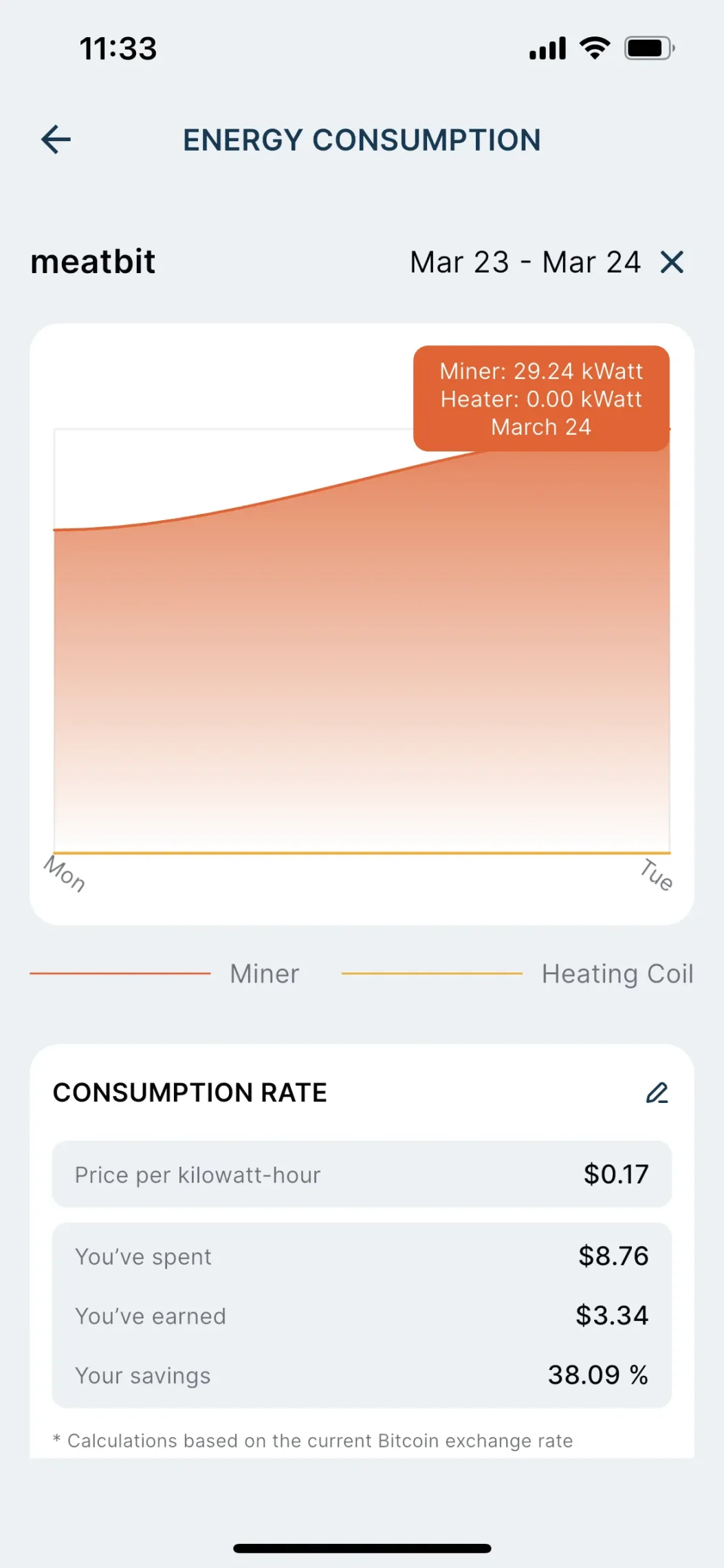 但换个思路:这笔电本来就是我要用来取暖的,那每天最多 2 美元的比特币 「返利」 就有点吸引力了。谁不想取暖费打个六七折?