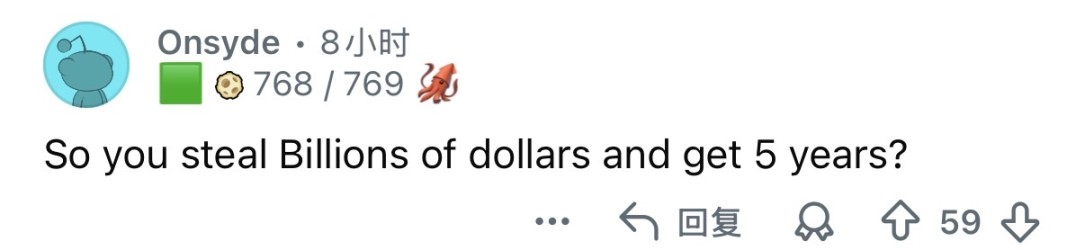 网络辣评:所以你偷了数十亿美元,却只判 5 年?(或许判决时不是按照当前比特币的价格计算的?)