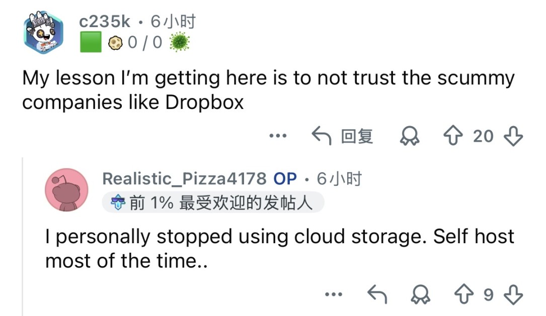 网友表示,我从这件事中学到的教训是不要信任像 Dropbox 这样的卑鄙公司。