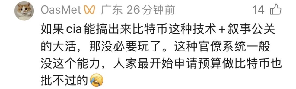 但也有网友表示质疑,CIA 应该没有能力搞出比特币,最开始申请预算的时候可能就被否了。