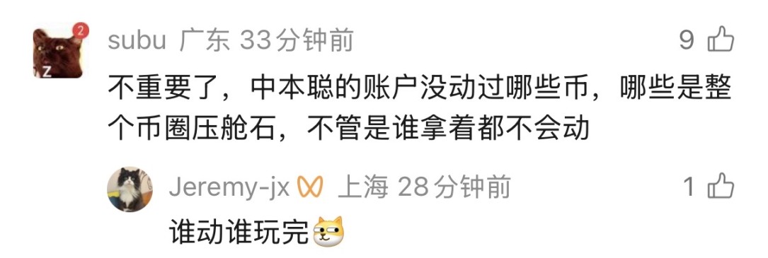 网友辣评:中本聪是谁不重要了,只要中本聪账户中的比特币作为「币圈压舱石」一直安稳存在即可。