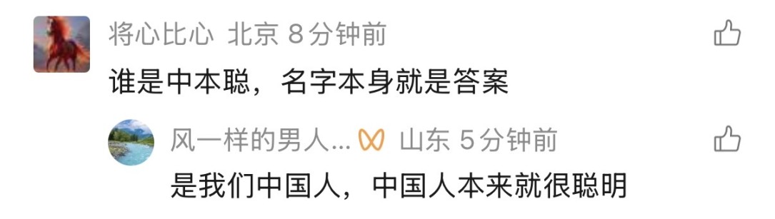 原来「中本聪」的意思是「中国人本来就聪明」!