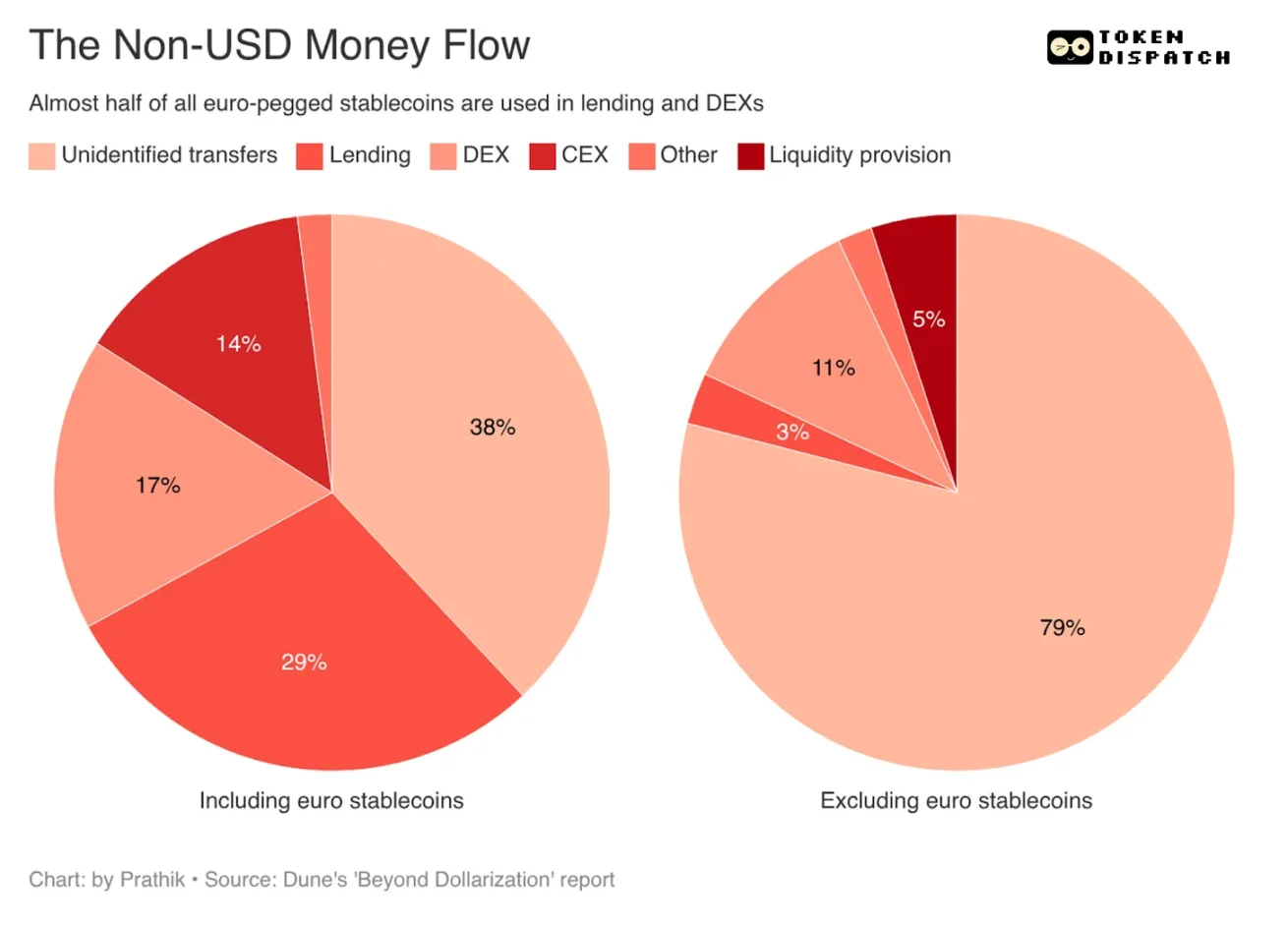 但这份数据存在一个问题:如果剔除欧元稳定币,市场格局将截然不同。